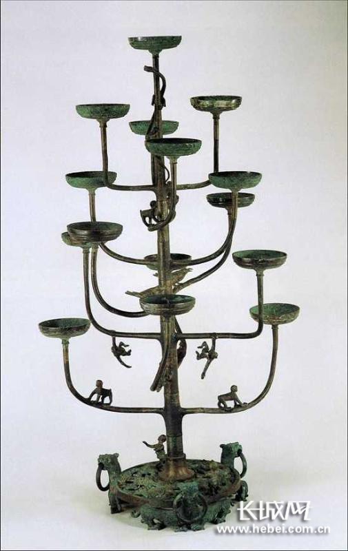 两墓中共出土随葬品19000余件,有青铜礼器、陶礼器、漆器等。其中青铜器占有举足轻重的位置,如金银镶嵌龙凤形铜方案,器足以四只卧伏的小鹿承托一圆圈,圆圈之上是蟠螭绕成的四龙四凤,龙顶之上又承托一方案;十五连盏铜灯,高84.5厘米,形状就像是一颗大树,树上攀援着游戏玩耍的群猴,树下立二人仰面挑逗,造型具有浓厚的生活气息,妙趣横生;中山王厝铜壶和嗣子铜壶共有铭文1101字,确切记述了墓主人和中山国世系及有关的史实,是研究中山国历史的重要史料。此外还有银首人俑铜灯、银镶嵌双翼神兽等,均为精美非凡的艺术珍品。仅在河北省博物院“战国雄风古中山国”专题陈列中的青铜器,就有四五百件(套)之多,居河北古代史陈列青铜器之首。