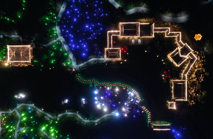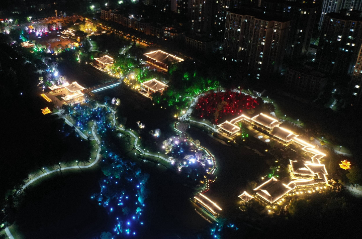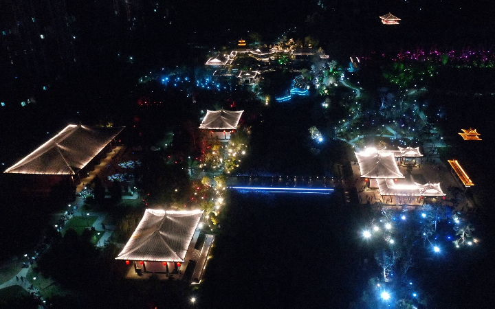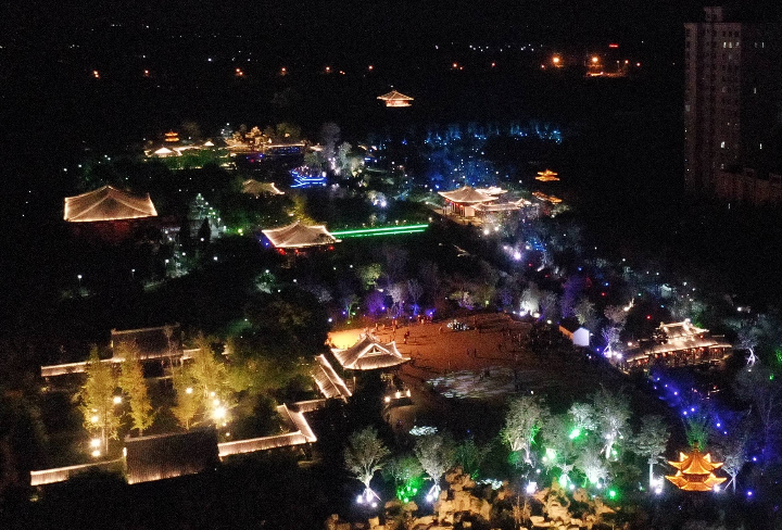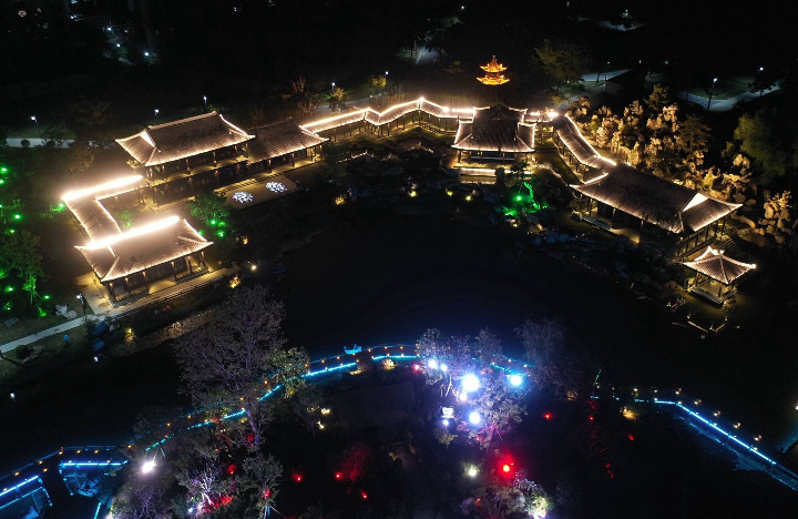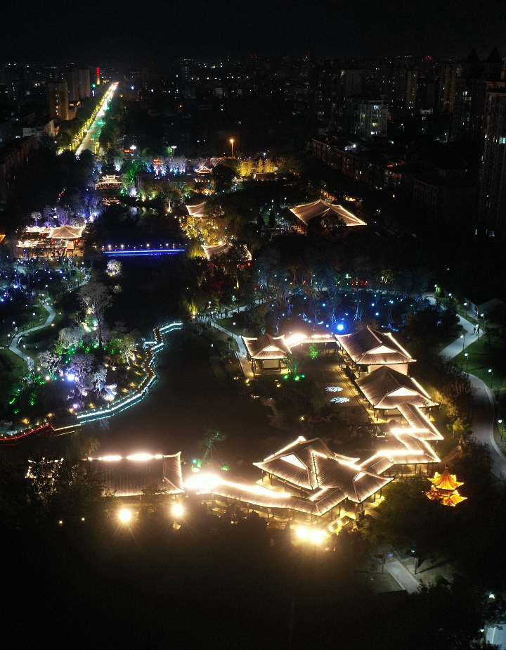 近日,使用无人机在河北省石家庄市栾城区柴武台公园拍摄的夜景。李明发 摄