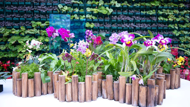 花展温室及热带植物温室还分别以翩翩蝶舞、缤纷乐章、勃勃生机为主题布置了三大植物景墙,共使用蝴蝶兰、杜鹃、红掌、矾根、秋海棠、银叶菊、鸟巢蕨等植物26000余株,三大景墙各具风格,或浪漫或大气或精致,给人带来震撼的观赏效果。