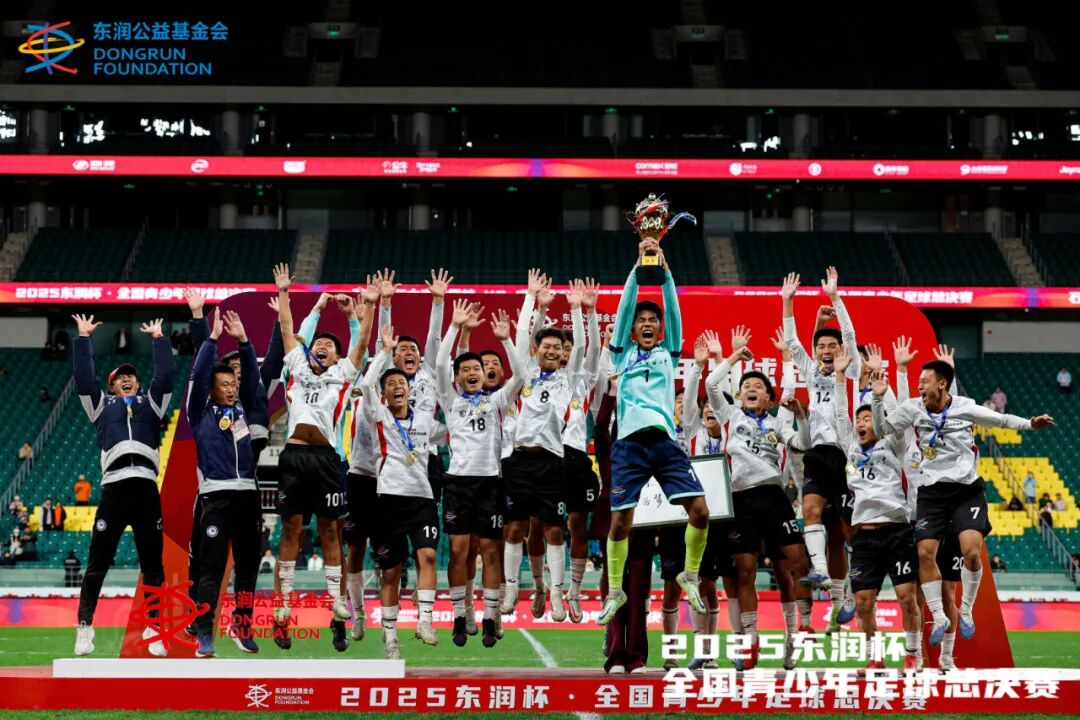 11月1日晚,2025“东润杯”全国青少年足球总决赛,在北京工人体育场举行。石家庄二中实验学校男子足球队经过点球大战,以总比分6比5力克成都棠湖外国语学校队,捧起全国总冠军奖杯。