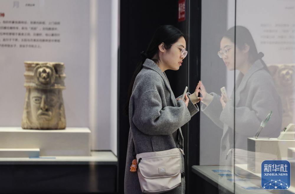 11月15日,观众在河北博物院参观“丛林圣殿——墨西哥玛雅文明展”。新华社发(梁子栋摄)