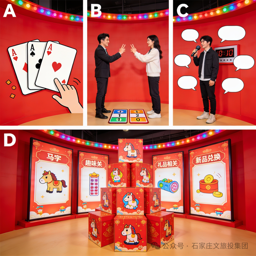 “马马福福,快乐不马虎”限定日期开放的互动游戏售卖快闪站,市民可参与扑克牌挑战、石头剪刀布、说六个“马”字成语、“马”字相关趣味图片猜成语/网络梗等活动,领取限定新年礼物。