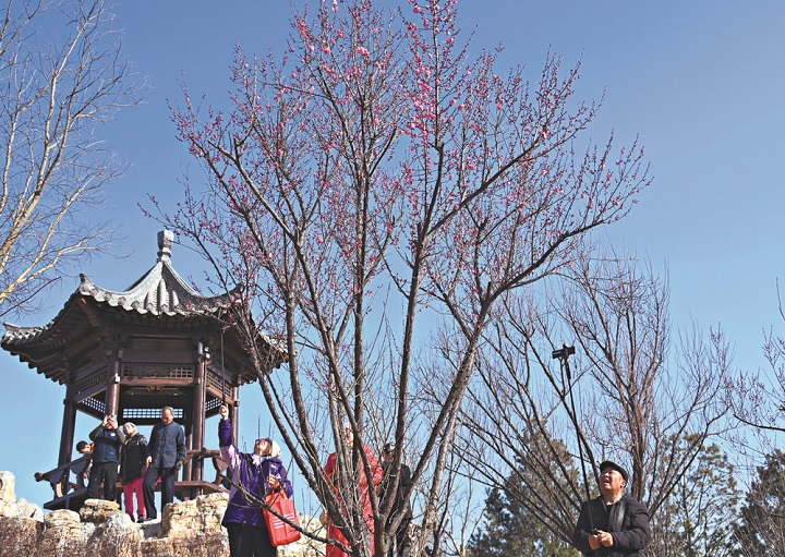 冬日里,在石家庄市太平河畔,梅岭春早公园内的梅花陆续开放,吸引了许多市民前来游玩赏花。粉红的花朵与亭廊、假山石等相映成趣,为寒冷的冬天增添了诗情画意。