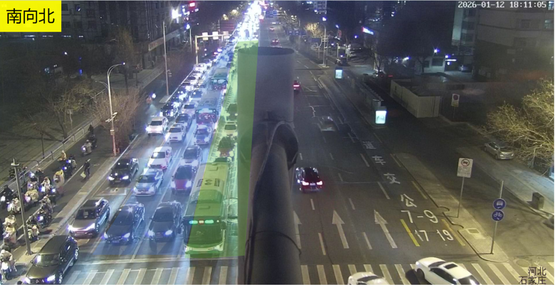 针对此情况,交通感知优化中心在路口南北直行后增加了南单放相位。南口直行在此相位放行,有效缩短南口车辆排队长度至130米,南向北通行时间缩短16%。