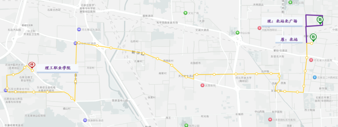 1.起止点:始发站理工职业学院不变,终点站由北站南广场调整为北站北广场。
