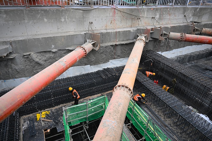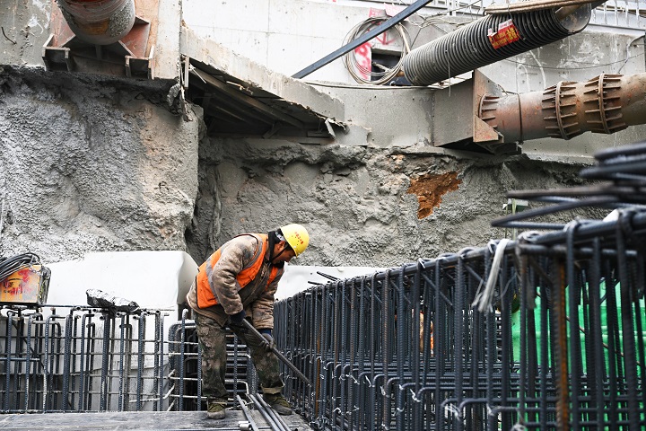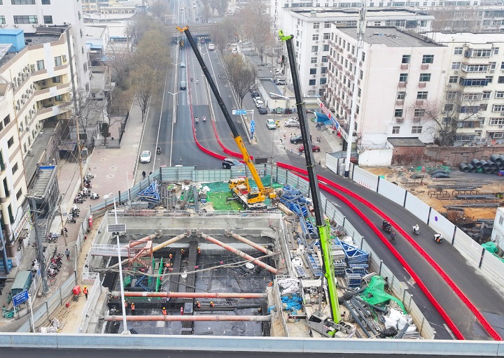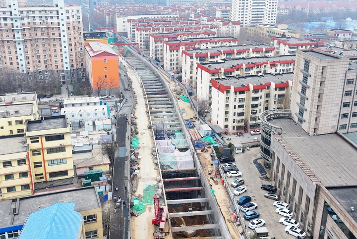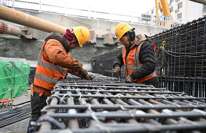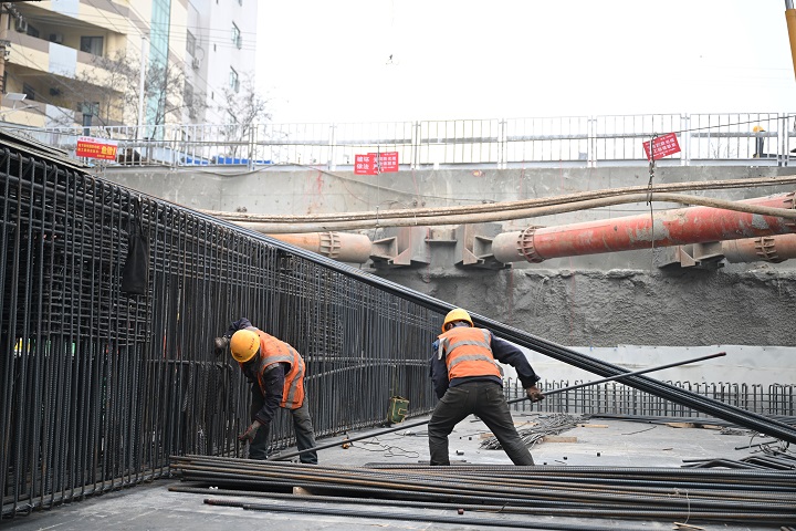 1月29日,中铁二十局集团建设者在石家庄地铁5号线一期工程和平西路站现场施工。记者 赵永辉 摄