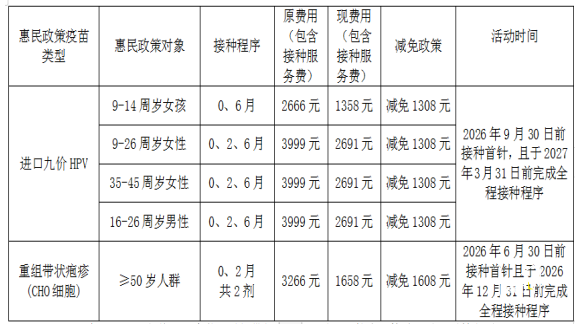 特别提醒:无论接种哪种疫苗,均需在规定时间内完成首针及全程接种,且所有针次须在同一接种门诊完成,方可享受惠民政策。未按规定时间或未完成全程接种者,将无法享受相关惠民政策。