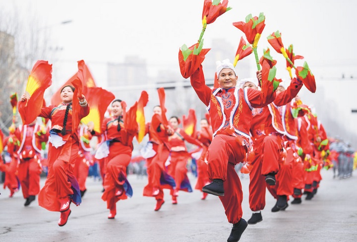 10时,巡游活动正式启动。37支巡游队伍、2700余名演职人员沿着冶河路载歌载舞向前行进。古韵悠长的散蜡鼓队、威武雄壮的舞龙舞狮队伍率先登场,一路欢歌一路起舞,将新春的喜庆氛围拉满。人民公园北口、荷花楼路口两大巡游表演场地,成为民俗文化集中展示的舞台;北国路口、福美佳门口、荷花楼路口三大暖场场地,平山镇组织的农村文艺团队轮番登台献艺。鼓声、歌声与欢笑声交织萦绕,冶河路俨然成为一道流动的文化风景线,让现场群众沉浸式感受新春的热闹与美好。