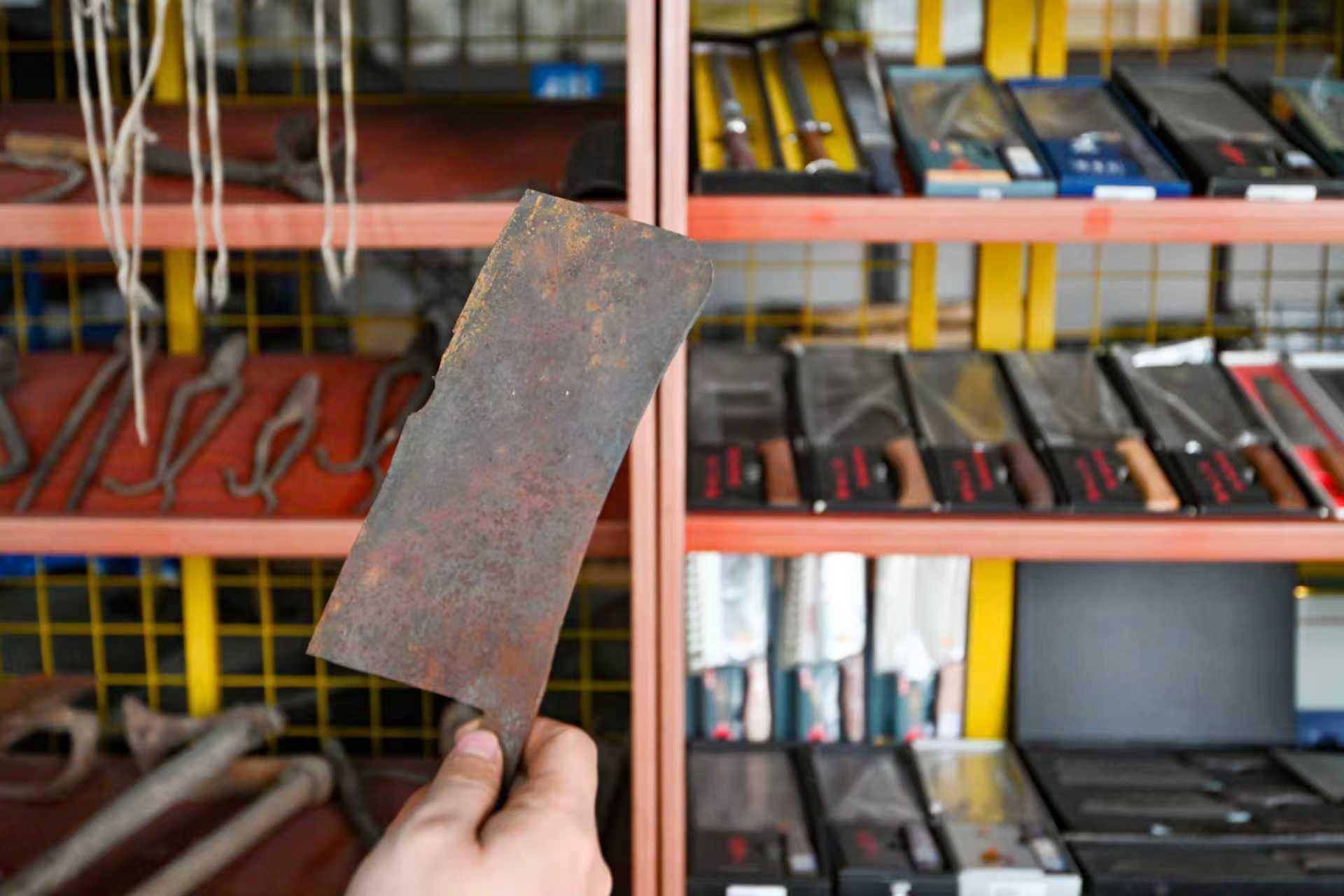 在北创刀具的博物馆产品陈列区,各类刀具琳琅满目:适配两口之家的窄款菜刀,剁骨专用的重型刀具,配套拖拉机使用的大型农机犁铧,还有远销海外的青贮机刀片。从民用厨具到农业机械,北创始终紧跟市场需求调整产品布局,产品家族不断壮大。