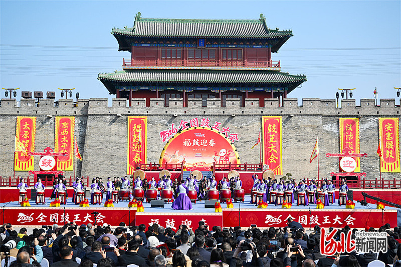 3月15日10时,石家庄正定古城南城门瓮城,伴随着铿锵有力的鼓声,2026全国鼓王大会拉开序幕。