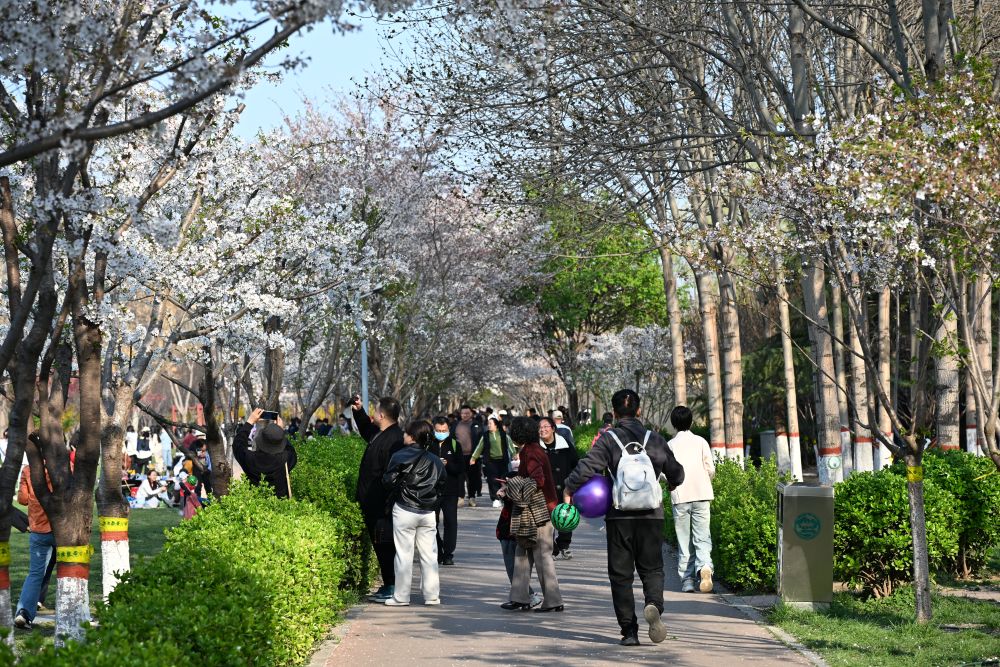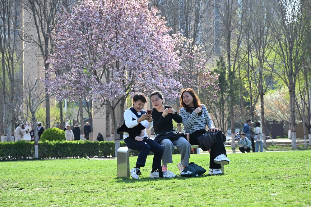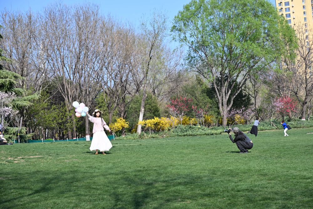 3月31日,市民在石家庄市柏林公园踏青游玩。付杉 摄