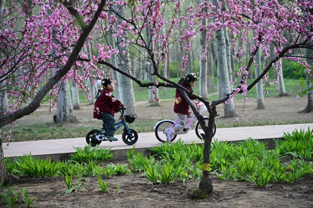 3月31日,小朋友在石家庄市秀水公园玩耍。付杉 摄