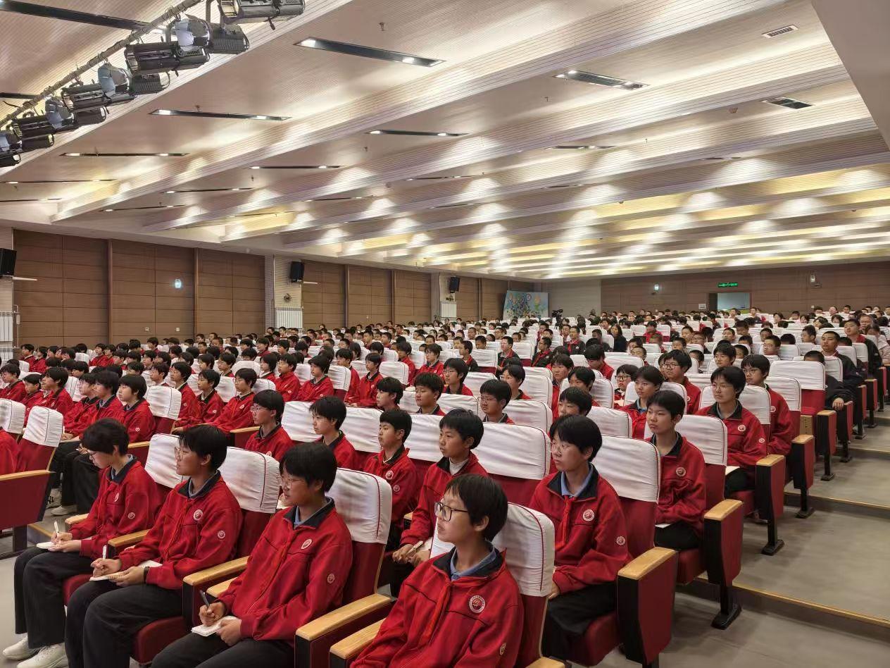 本次活动采用“线下现场授课+线上同步直播”的形式开展,实现全区中小学师生广泛覆盖。线下主会场设在44中学文华报告厅,该校全体初一50个班级,近3000名学生现场聆听授课;线上通过直播形式,面向全区56所中小学有思政课的班级同步推送。