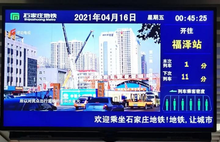 1、站台上方的乘客信息系统显示屏会显示本次列车的终点站为洨河大道站或福泽站。列车进站前,站台还会发出广播提醒,会播报列车的终点站。