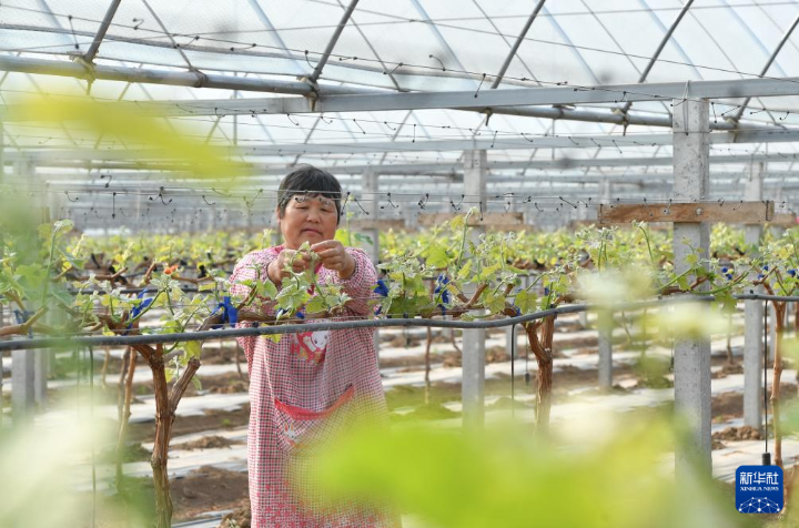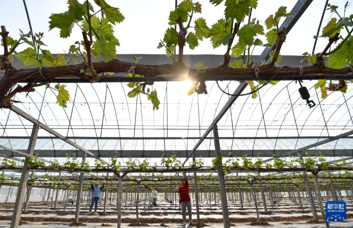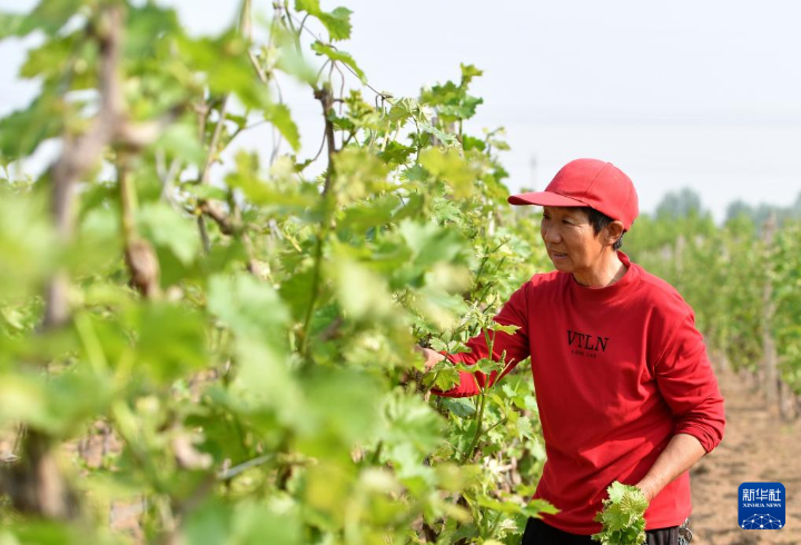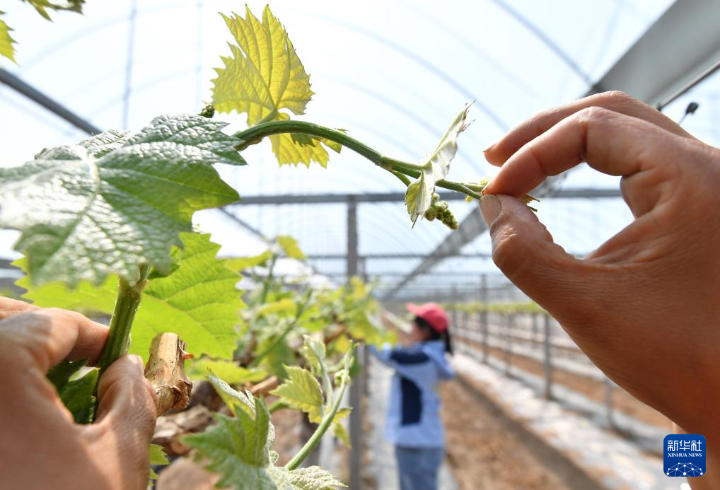 4月17日,河北省晋州市马于镇一家葡萄种植专业合作社的社员在大棚内给葡萄藤掐蔓。近日,河北省晋州市的农民抢抓农时,对葡萄藤进行掐蔓、定果等管护,为丰产打下基础。近年来,晋州市引导农民采取“合作社+基地+农户”的模式种植阳光玫瑰、红玫瑰、巨峰等优质葡萄品种,促进农民增收,助力乡村振兴。据介绍,目前该市葡萄种植面积达4.3万亩。记者 杨世尧 摄