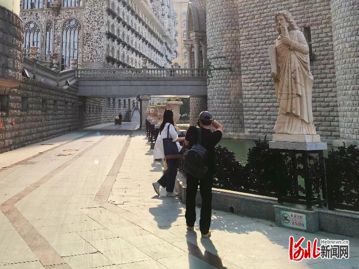 “这是‘一马当先之胜利女神’雕像群,周围是学校的哥特式城堡群。”工作人员告诉记者,城堡群是学校的教学和办公场所,以及专家和学生公寓,也是最受网友喜爱的拍照打卡地。