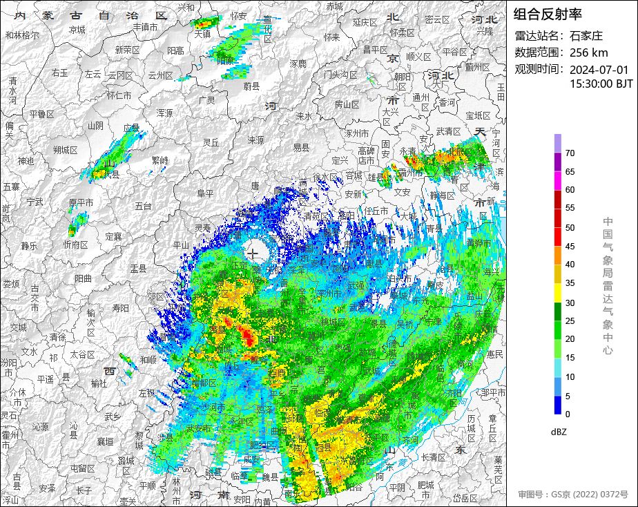 石家庄市气象台2024年7月1日12时41分发布暴雨蓝色预警信号: