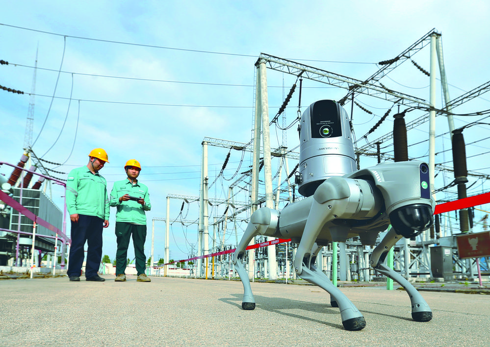 8月26日,在220千伏韩通变电站设备区,国网石家庄供电公司试点应用于变电站巡检工作的“机器狗”联动“变电哨兵”高清监控摄像头进行全站巡检工作。四足“机器狗”采用仿生运动设计,具备较强的场地通过性,在设备密集区域可实现较为全面的观测覆盖,极大提升了巡检质量,保障电网安全稳定运行。