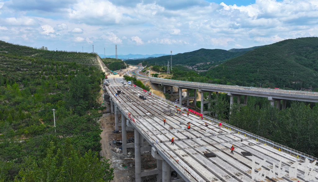 石太高速改扩建项目三分部生产经理翟银伟介绍,为保障甘陶河大桥的施工进度,项目部增加了30余台设备、140余名工作人员,采用桥梁上下部结构平行作业方式,提高了50%的施工效率,力保今年10月大桥完工。