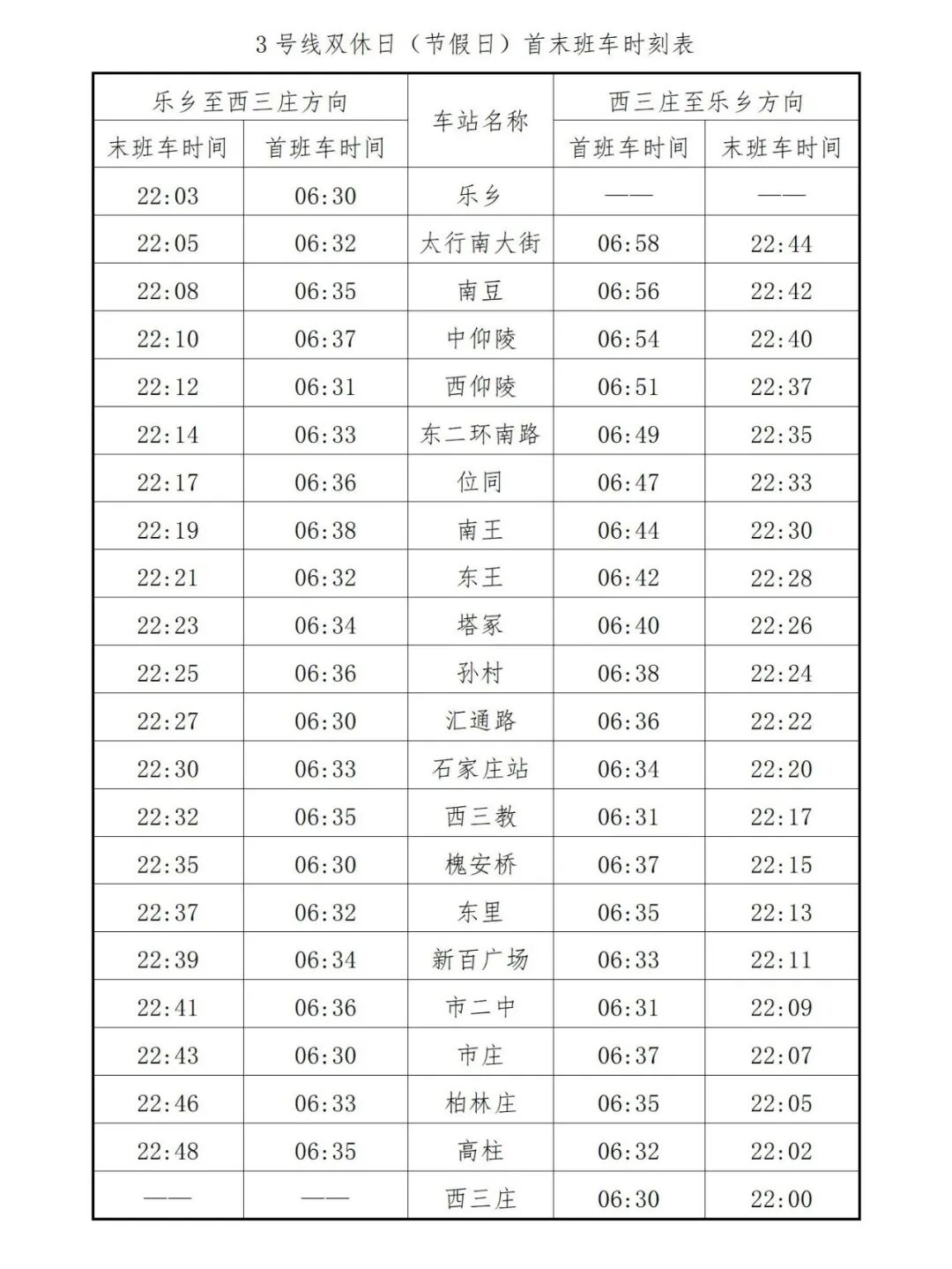 为进一步提升服务质量,助力“馨心相伴 石时相随”服务品牌发展,10月9日起,石家庄地铁通过调整行车组织方式,优化了2、3号线列车运行图,进一步便利了市民早间出行。调整后2、3号线首班车时间有所变化,请市民乘客合理安排出行。