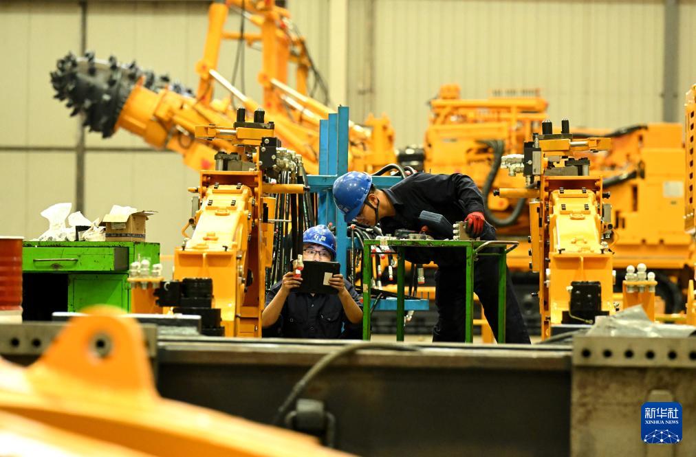 10月9日,在河北石家庄装备制造产业园,技术人员在石家庄煤矿机械有限公司装配车间组装装备。国庆、中秋“双节”假期结束,各地企业开足马力,生产一线一派热火朝天的景象。新华社发 陈其保 摄