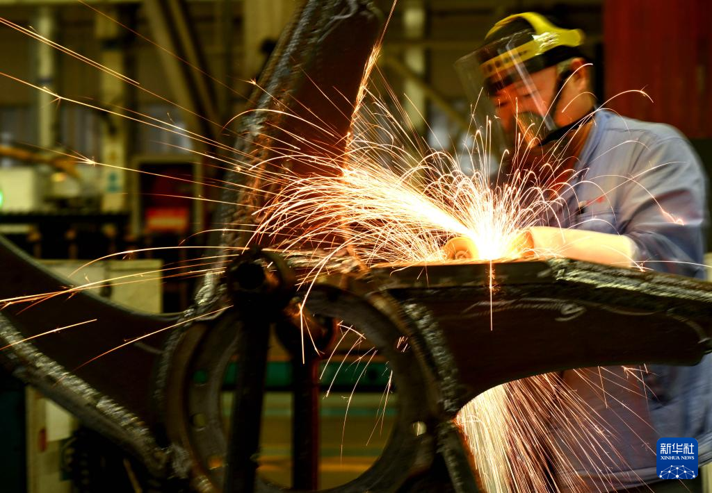 10月9日,在河北石家庄装备制造产业园,技术人员在石家庄煤矿机械有限公司装配车间忙碌。国庆、中秋“双节”假期结束,各地企业开足马力,生产一线一派热火朝天的景象。新华社发 陈其保 摄