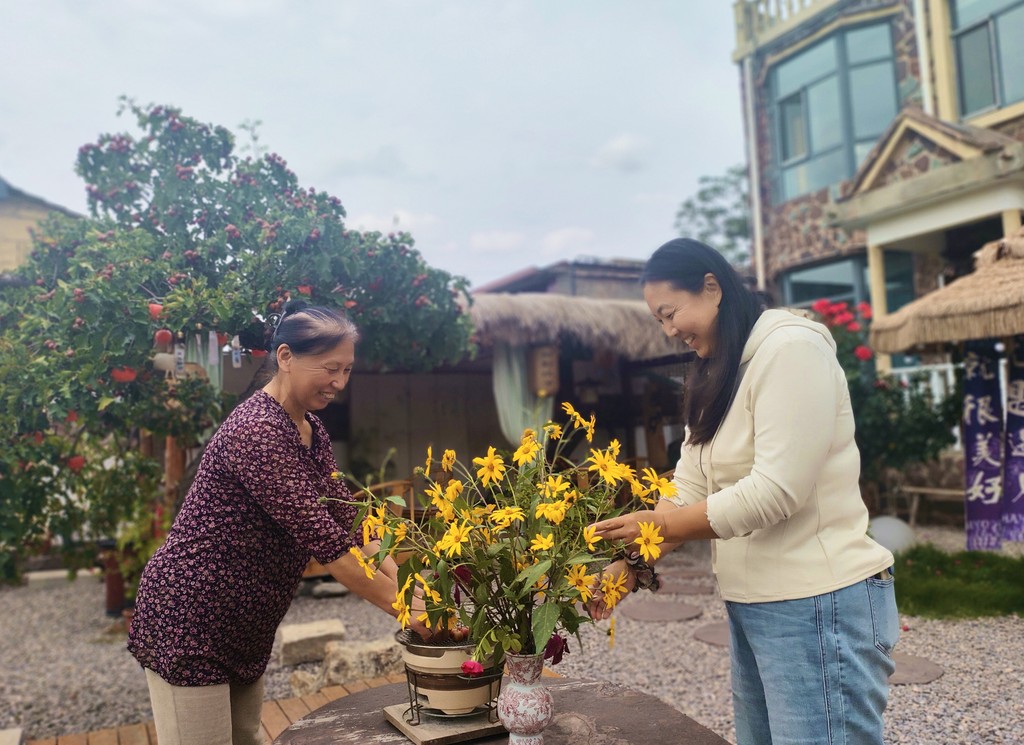陈香介绍,为了丰富游客体验,今年“陌野山墅”民宿增加了影音室、台球厅、书吧等功能区,并在后院设置打卡区,花艺盆景与木椅吊饰营造出松弛浪漫氛围,吸引了一个又一个游客留言、拍照。