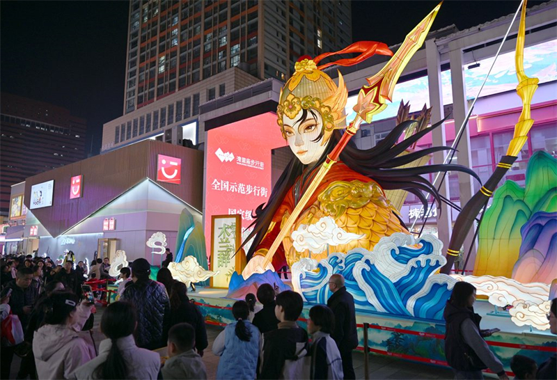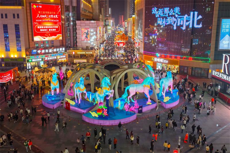 11月15日,市民在石家庄市湾里庙步行街参观灯会。记者 史晟全 毛媛 摄