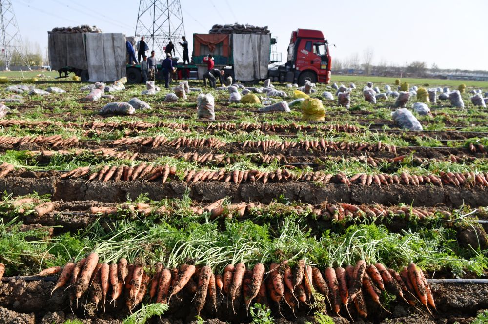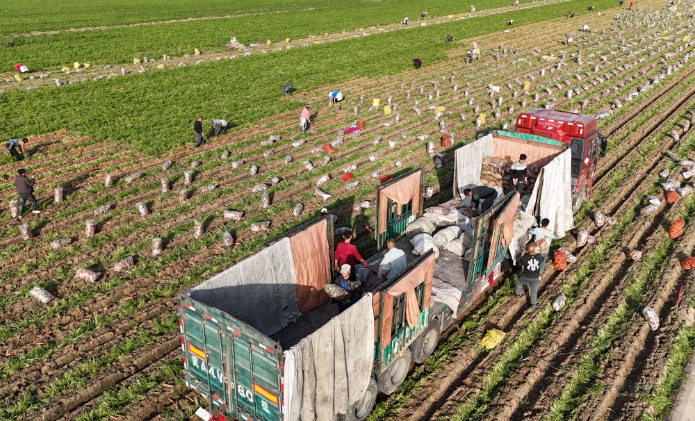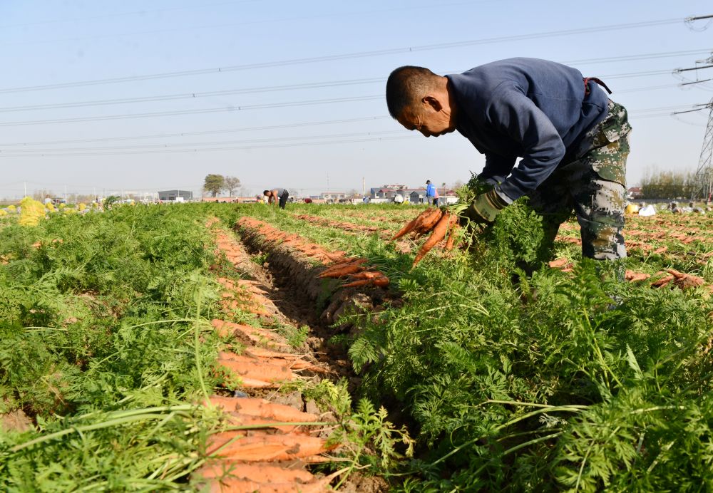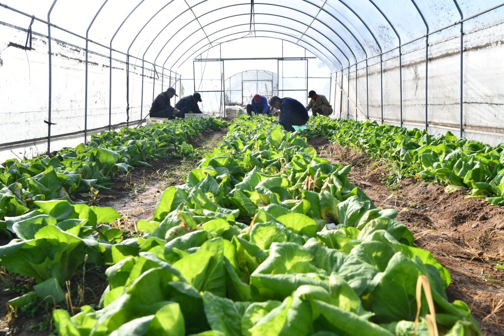 11月22日,在石家庄市栾城区河北京蔬农业科技有限公司优质蔬菜培育基地,工作人员在采收蔬菜。李明发 摄