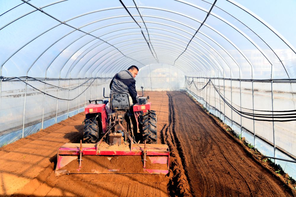 11月22日,在石家庄市栾城区河北京蔬农业科技有限公司优质蔬菜培育基地,工作人员在大棚里旋地。李明发 摄