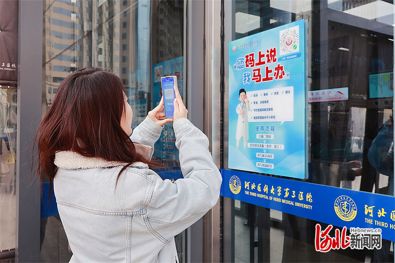 走进河北医科大学第三医院,在门急诊出入口、一站式服务中心、挂号收费处、各候诊区导医台、各病区护理站等显眼位置,一张统一制式的“码上说 马上办+二维码”海报格外引人注意。