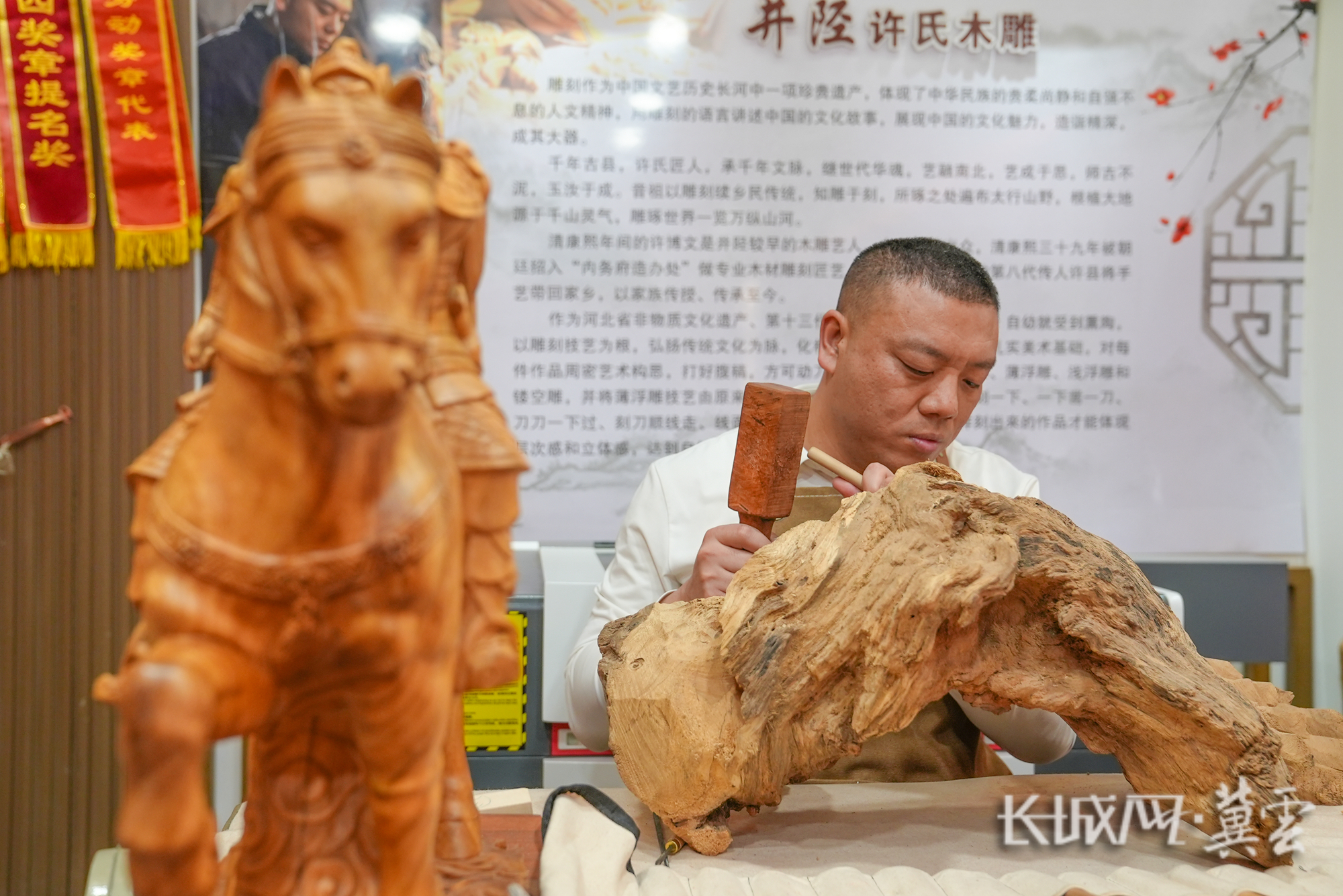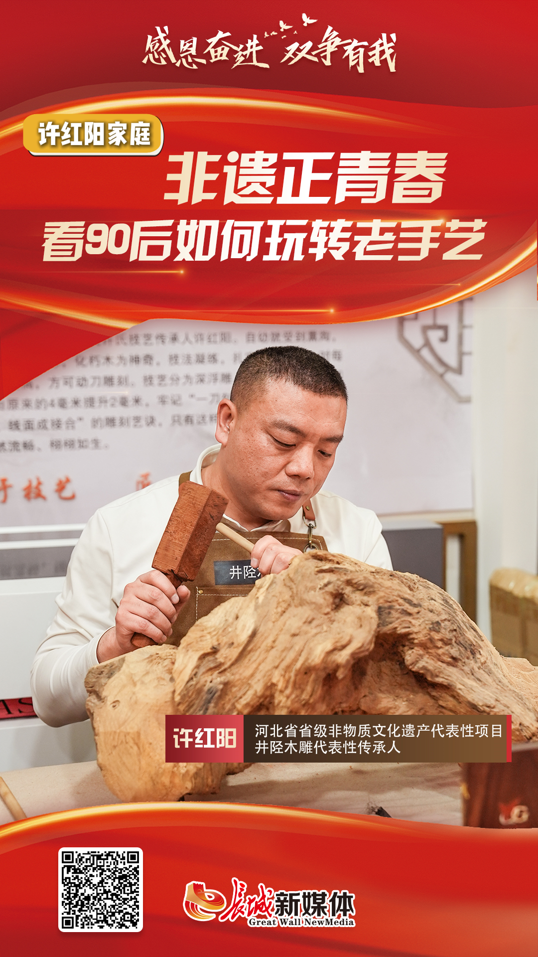 这位“90后”匠人,是河北省省级非物质文化遗产代表性项目井陉木雕代表性传承人。其祖祖辈辈与木头打交道,到现在有三百多年历史,许红阳已是第十三代传人。