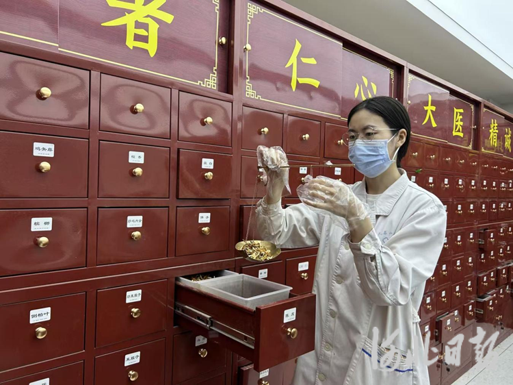 在现代化的智慧共享中药房,36台自动煎药机高效运转。“以往煎药,加水量靠药师根据药物质地和个人经验估量,易导致药液色差或浓度差异。如今的信息化管理不仅提升了效率,还确保了中药调配的准确性和稳定性。智慧共享中药房每天可代煎中药400付,效率比传统人工煎药提升了5倍。”马慧然说。