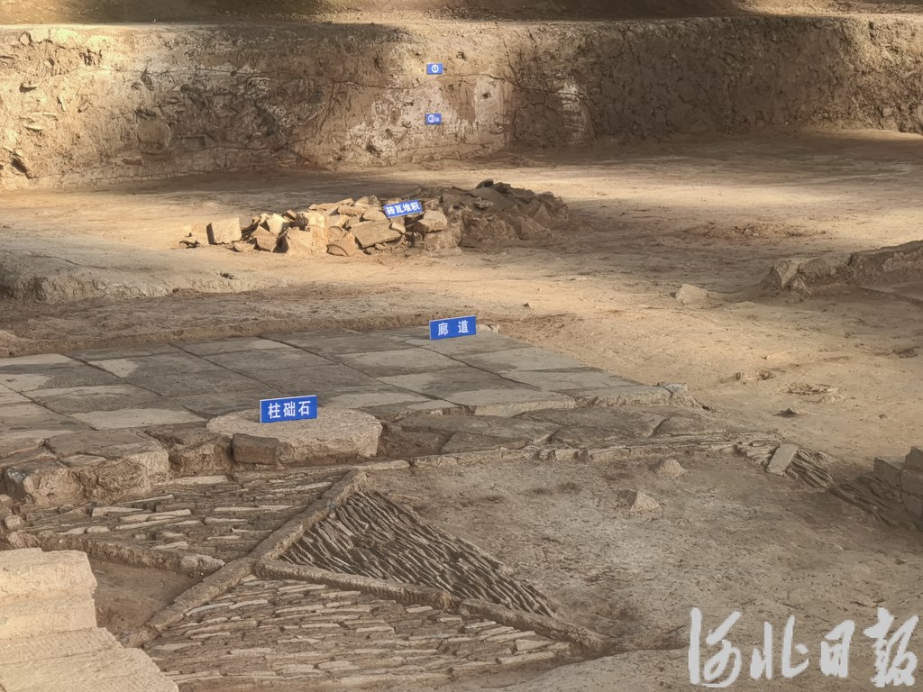 “那是大殿外的散水遗迹。这些整齐排列的圆形石块,是宫殿台基边缘的柱础遗存……这组宫殿建筑复原之后一定相当壮观!”遗址内,河北省文物考古研究院翟鹏飞博士指向一处发掘区说。