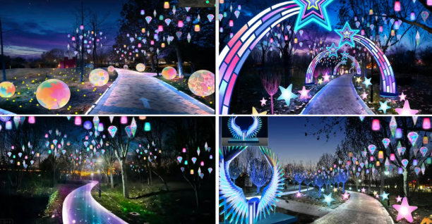 锦绣大明川景区的花灯造型美观、新颖别致。节假日期间,灯会上还有民俗火壶表演、悟空探花舞表演等活动,让游客感受传统文化的魅力。
