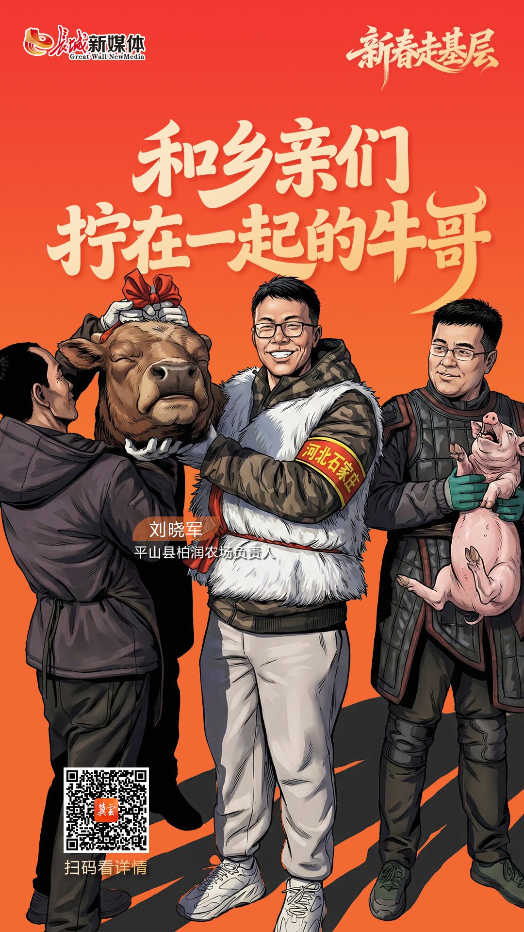 这个大个子叫刘晓军,平山县柏润农场负责人。但当地老乡都习惯叫他“牛哥”,这也是在他短视频账号里,10万粉丝对他的称呼。