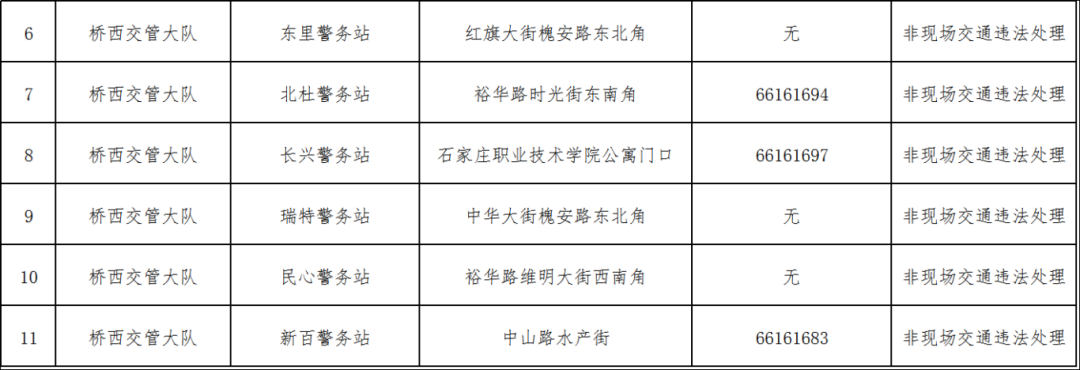 为进一步优化交管服务资源配置,提升业务办理效率,方便广大交通参与者就近办理交管业务,依据《中华人民共和国道路交通安全法》《道路交通安全违法行为处理程序规定》等法律法规,石家庄市公安局交通管理局对全市警务站非现场交通违法处理业务进行梳理调整。现将保留业务办理资格的警务站名单及相关事项通告如下: