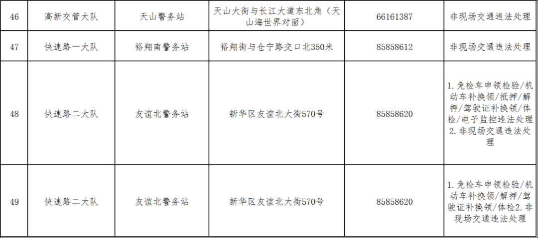 1.除本通告所列警务站外,全市其他综合警务站自本通告发布之日起,停止办理非现场交通违法处理业务。