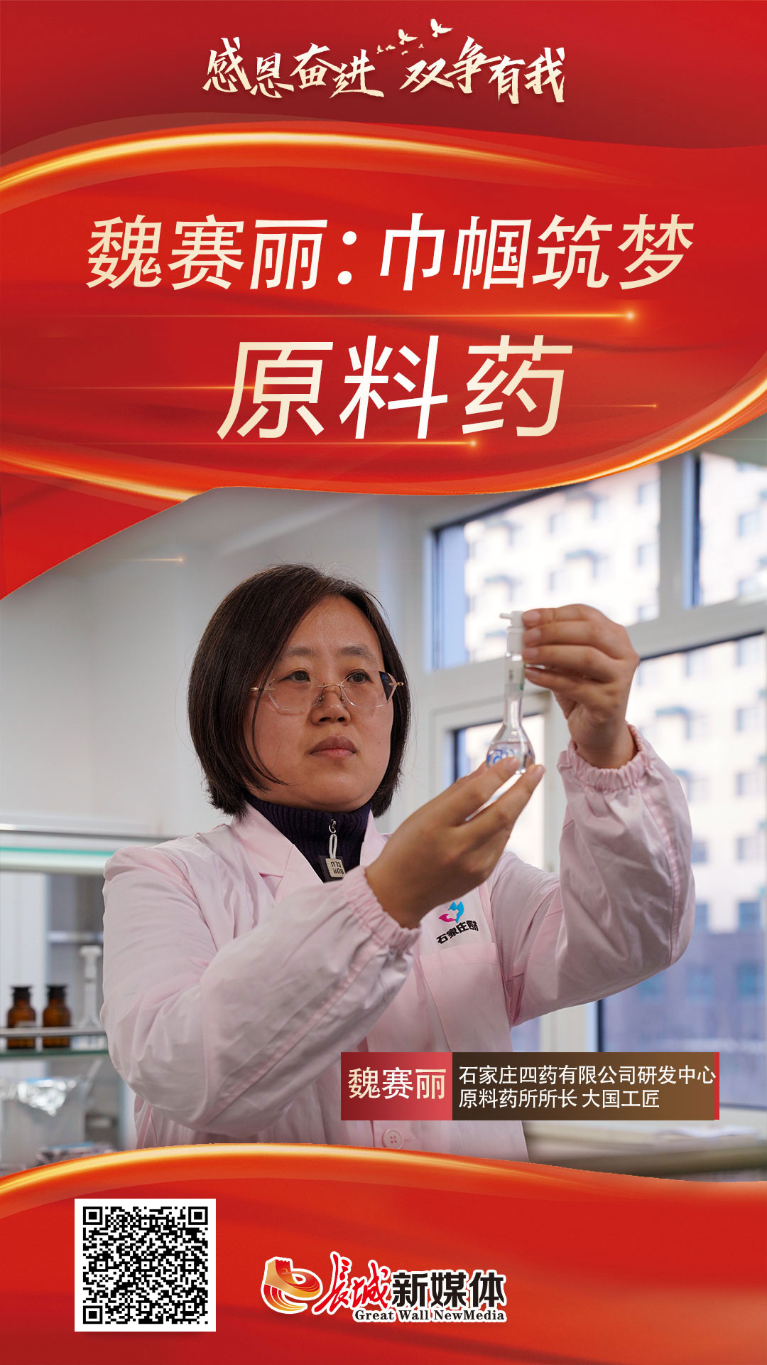 近年来,石家庄四药集团确立“原料药+制剂”一体化发展战略,魏赛丽成为这一新赛道上当之无愧的“破风手”。她带领团队围绕产业链部署创新链,持续攻坚特色原料药与创新药物的开发转化。2023年,其团队申报的原料药新药获批数量与效率位居全国同行业前列。她个人先后取得10余项国家专利,获评河北省青年拔尖人才、正高级工程师,大国工匠,并担任燕赵巾帼工匠生物医药科创联盟首届轮值主席;获河北省“五一劳动奖章”,入选“感动省城十大人物”。荣誉等身,本色不改。车间一线工人这样形容她:“你如果在生产线上遇到她,干活比谁都接地气。”