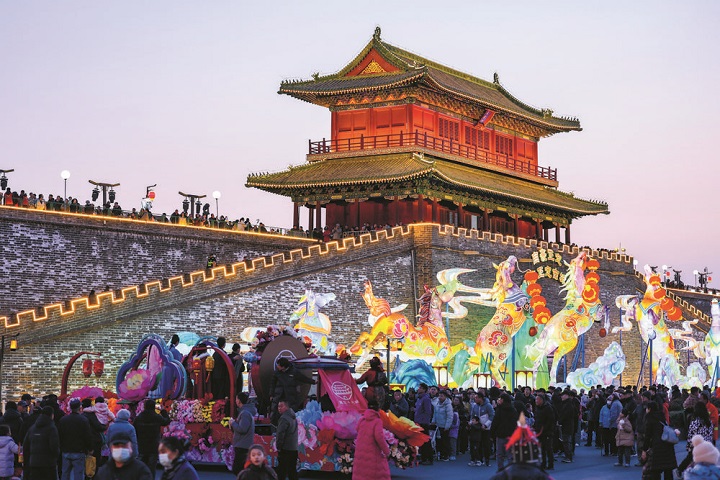 夜幕降临,华灯初上。河北省石家庄正定古城南城门上,千米城墙花灯绵延舒展,“八骏贺岁”灯组气势恢宏;湾里庙步行街、正太广场灯火璀璨,市民游客漫步其中,处处欢声笑语。游客吴静由衷感叹:“在石家庄,既有古城的厚重,又有都市的热闹,越逛越有味道!”这一幕幕烟火气十足、文化味浓郁的场景,正是石家庄文旅融合深度发展、城市活力持续迸发的生动缩影。