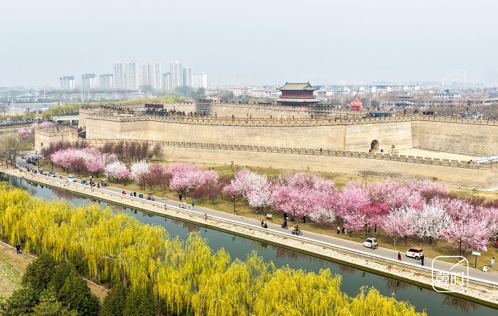春风和煦,景色明丽,正是踏青赏景好时节。在河北省石家庄市正定古城,人们赏春花、游古城,享受春日时光。