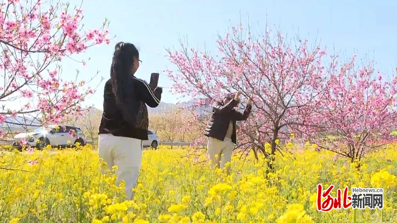 油菜花在春风中翻涌,层层叠叠的花海与连片的桃树、杏树交相辉映,金黄与粉白相互交织,勾勒出一幅生机盎然的春日田园画卷。微风拂过,花香四溢,吸引了蜜蜂、蝴蝶萦绕其间。随处可见三两游客结伴游览,拍照打卡,定格春日美好瞬间。