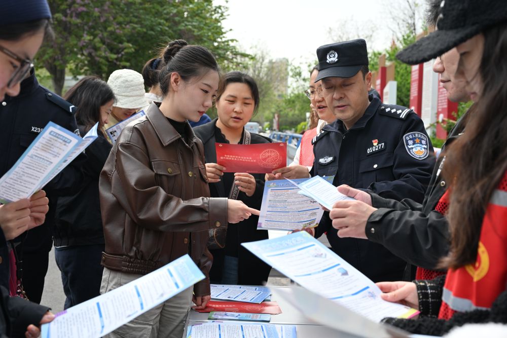 4月13日,石家庄市新华区西三庄街道工作人员及辖区民警向市民宣讲国家安全知识。付杉 摄