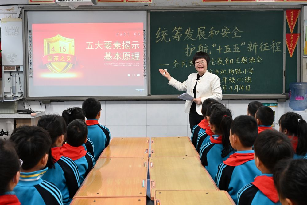 4月14日,在石家庄市机场路小学,老师为学生讲解国家安全知识。付杉 摄