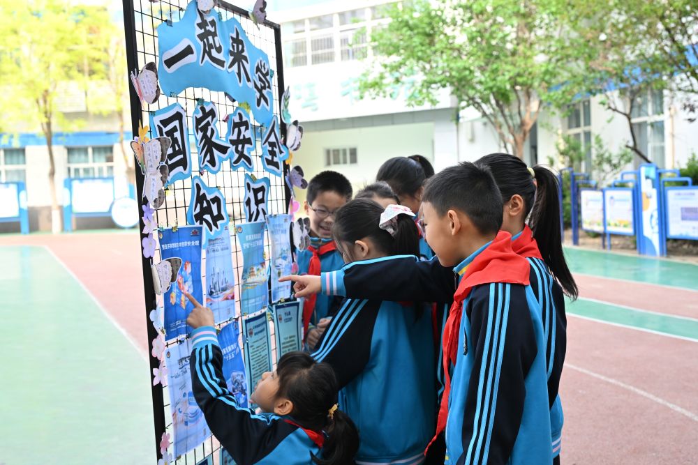 4月14日,在石家庄市机场路小学,学生在参观全民国家安全教育日主题展板。付杉 摄