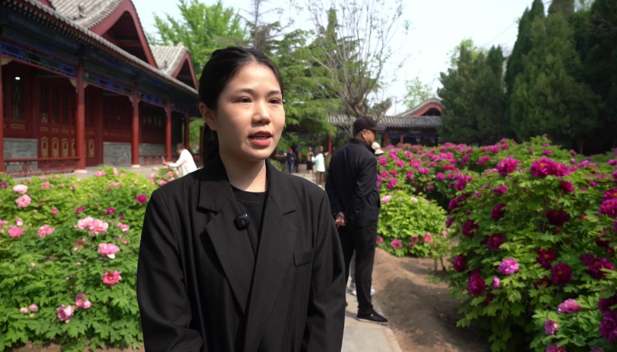 隆兴寺景区讲解员马思琪:隆兴寺作为京外名刹之首,对于寺院的美化和绿化都非常重视。我们现在看到的牡丹每年大概4月中旬到4月底是盛放期,欢迎大家这个时期来到我们隆兴寺看古建、赏牡丹。