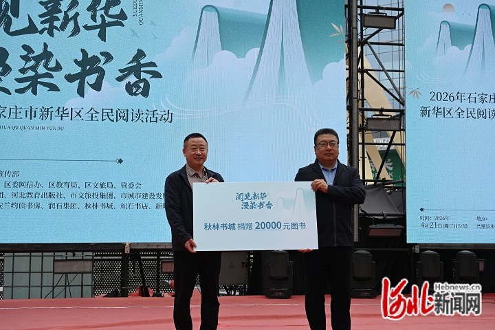 4月21日,2026年石家庄市新华区全民阅读活动开幕式在湾里庙步行街中心广场举行。本次活动由新华区委宣传部、区委网信办、区教育局、区文旅局、湾里庙步行街管委会等部门联合主办,多家文化企业及市民代表齐聚现场,共赴书香之约。