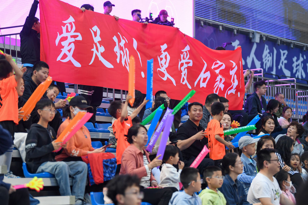 球迷在看台上呐喊助威。 新华社发(张晓峰摄)
