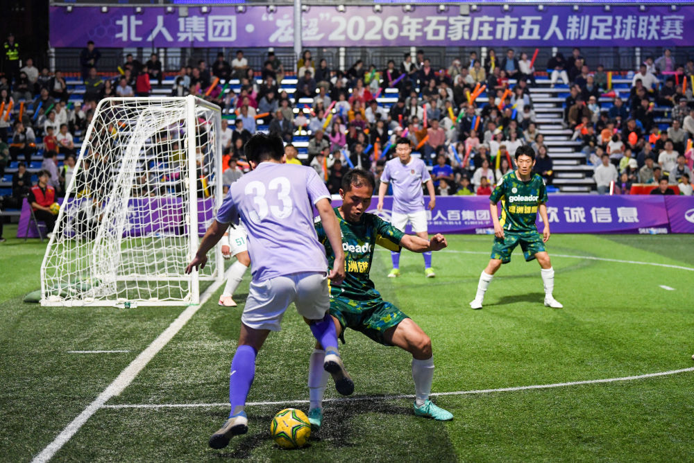 4月25日,在河北石家庄举行的2026年石家庄市五人制足球联赛资格赛中,裕华区绿洲雄鹰队2比1战胜SJZGA队。